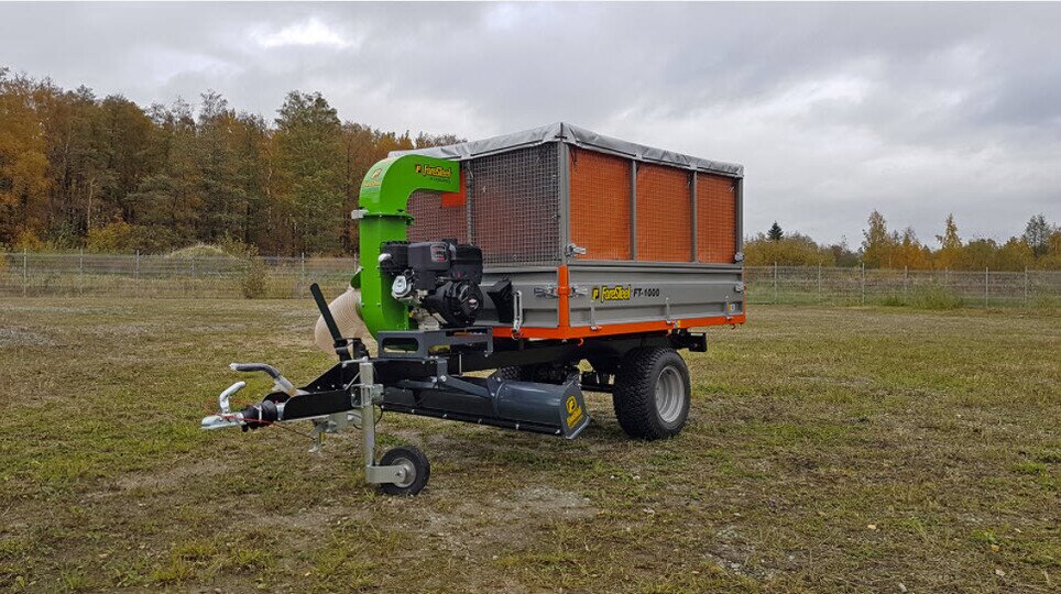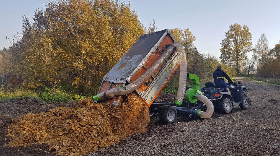 Ta przyczepa jest dostępna jako przyczepa do liści do szybkiego i łatwego zbierania liści