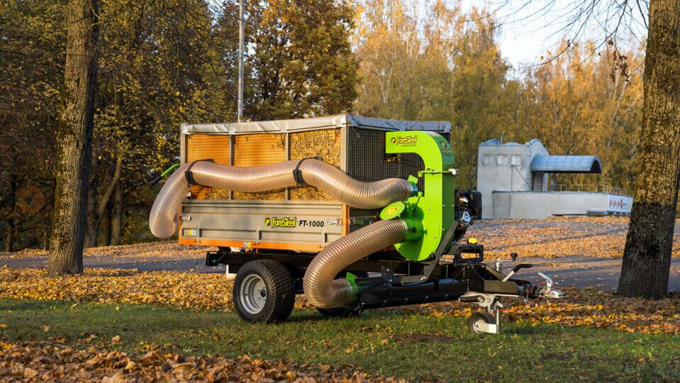 Przyczepa do liści Foresteel z unikalną opcją jednostki ssącej pod ramą oszczędza czas i minimalizuje potrzebę pracy ręcznej