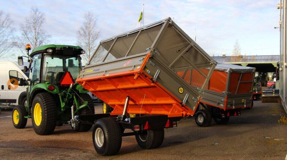Ta przyczepa jest dostępna jako przyczepa do liści do szybkiego i łatwego zbierania liści